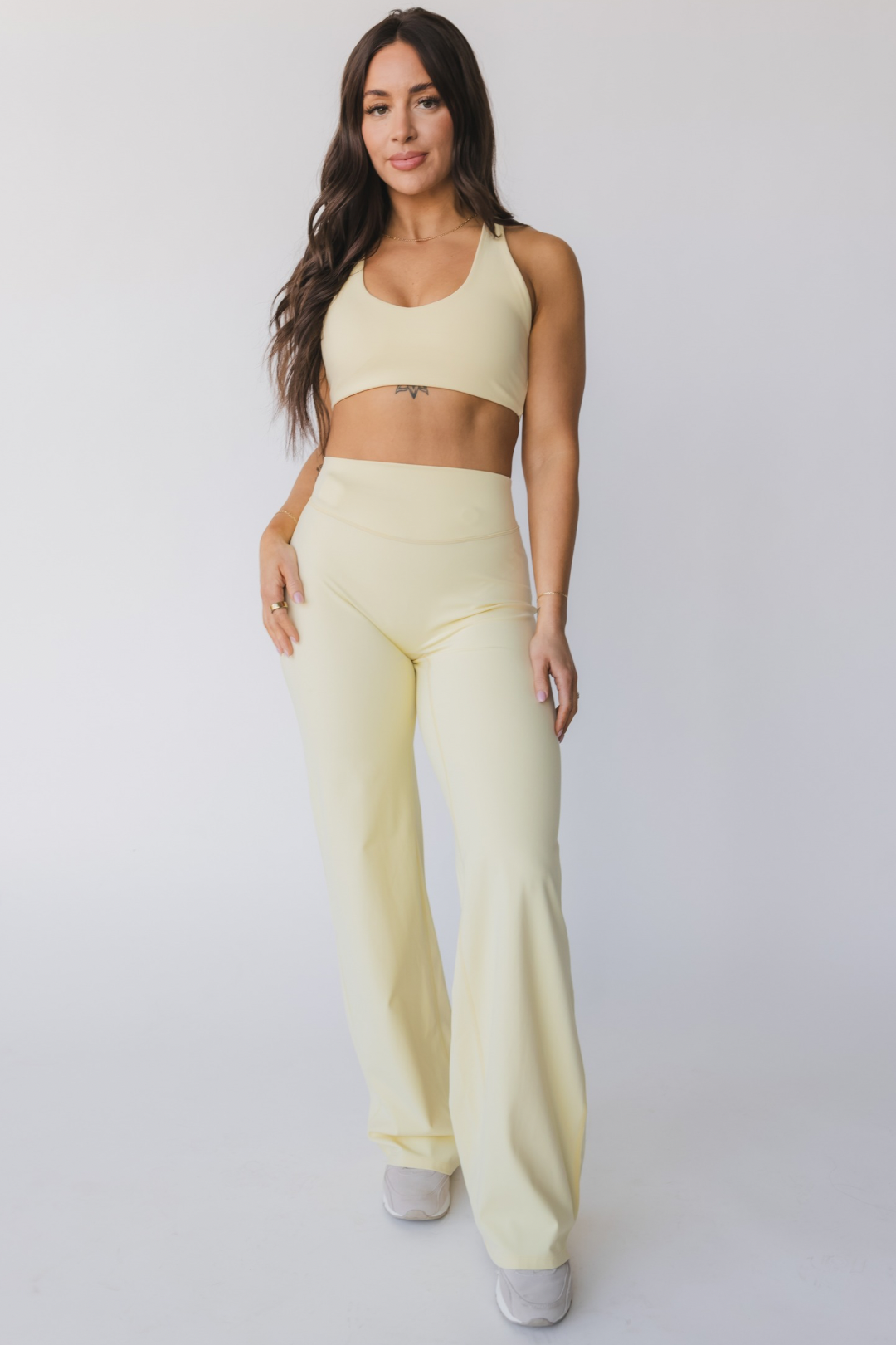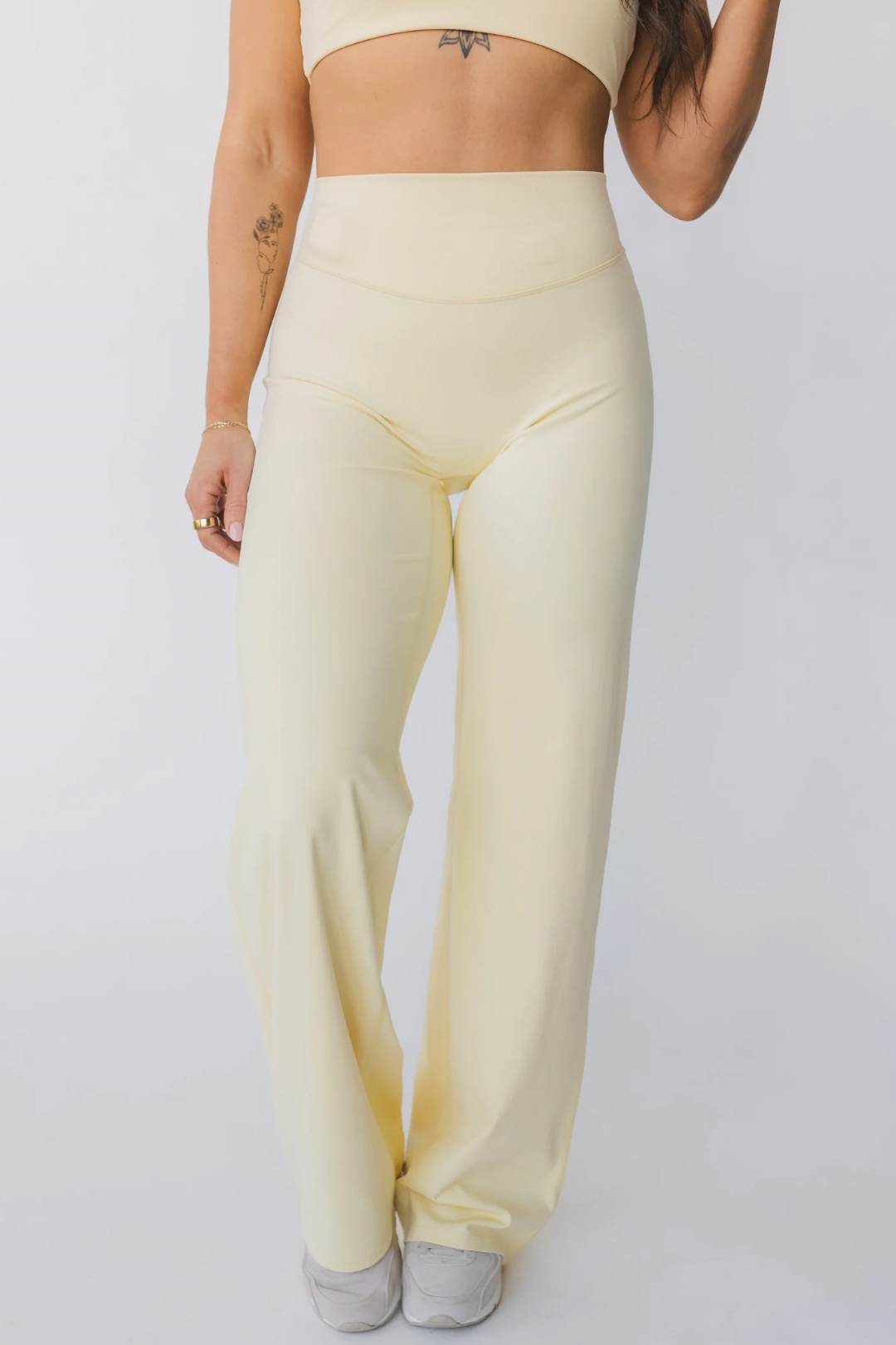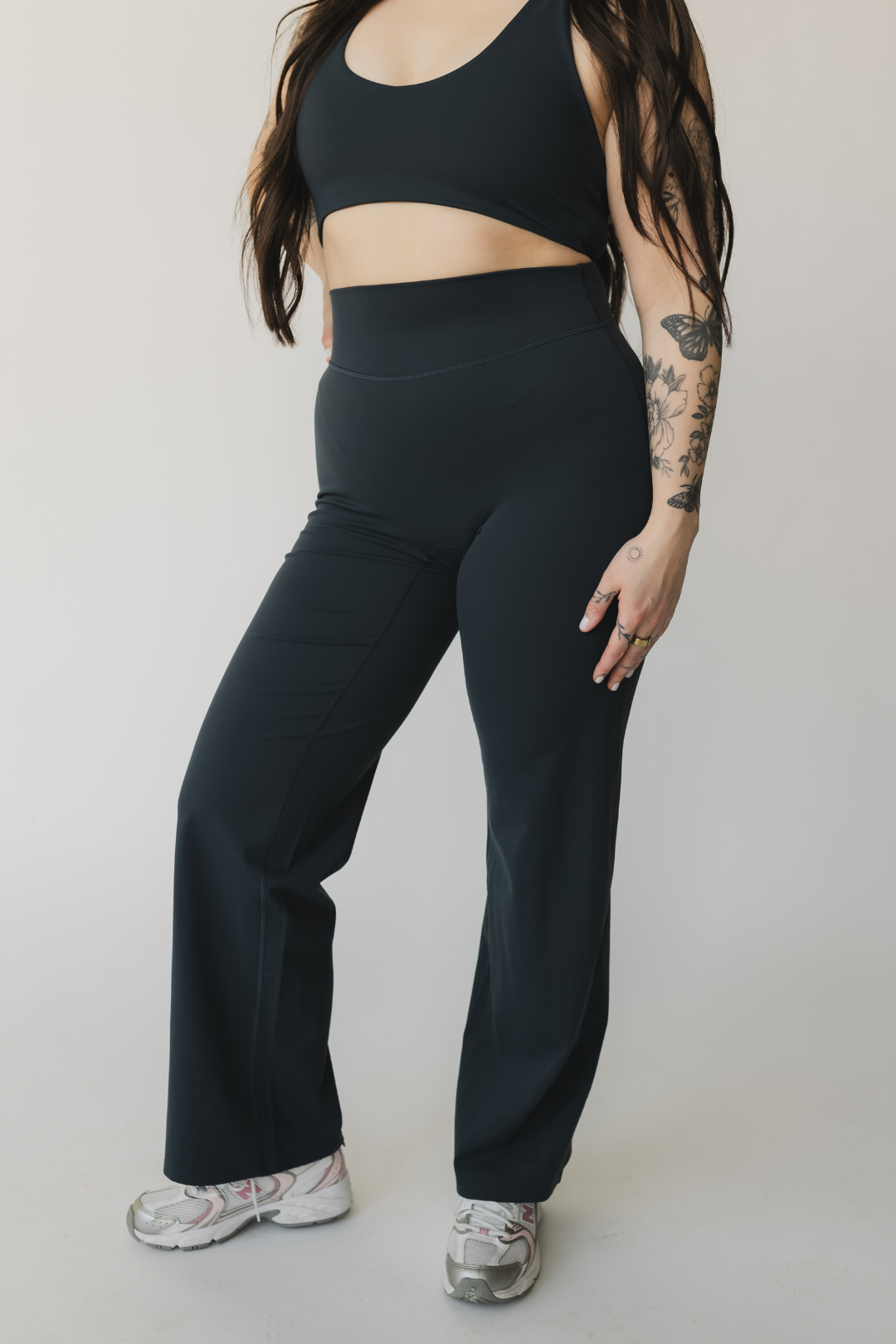 A relaxed yet refined silhouette with a high-rise, smoothing waistband and subtle V-contour glute shaping. The wide leg drape creates an effortlessly elevated look while maintaining the comfort of our signature buttery-soft performance fabric. No front seam, supportive stretch, and designed to move seamlessly from studio sessions to everyday styling.